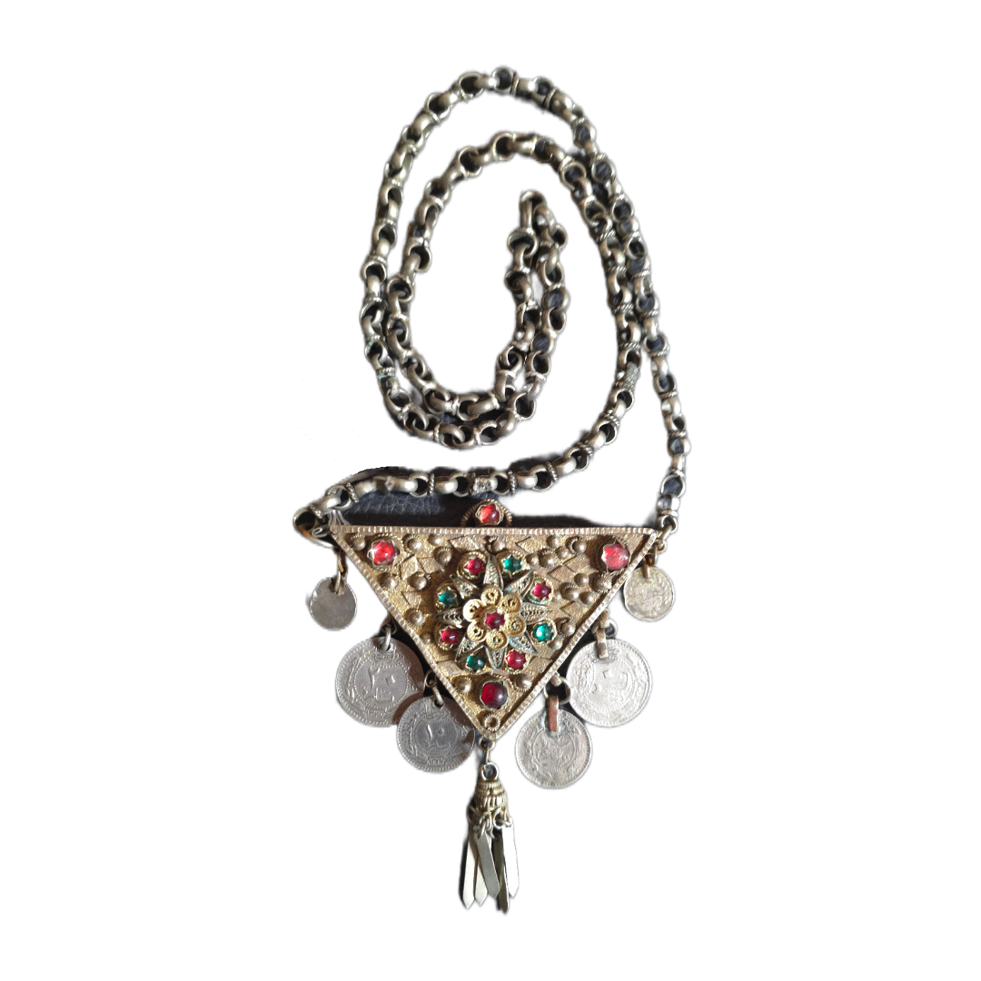 Triangular silver amulet.