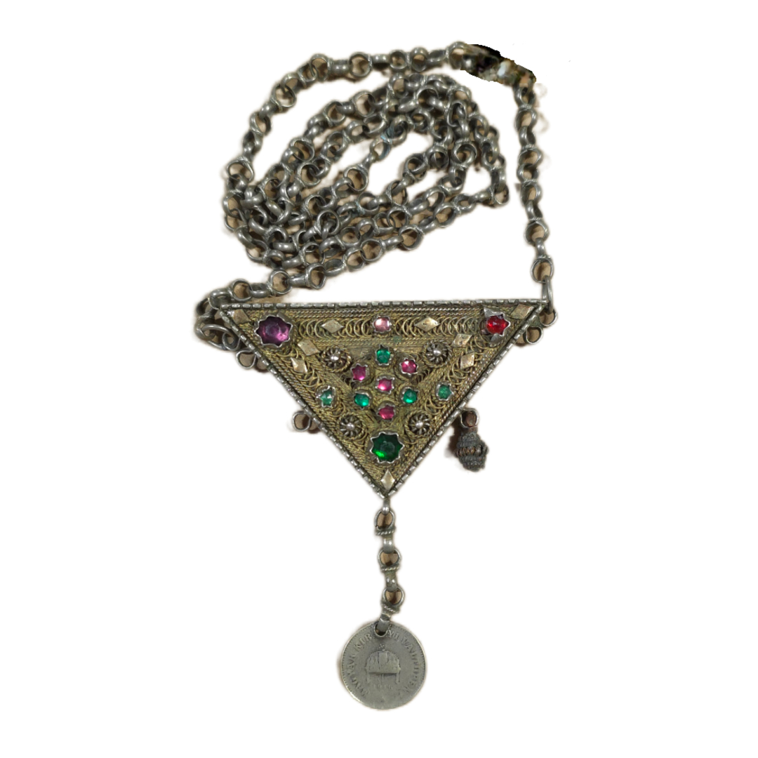 Amulet with chain in triangular shape.