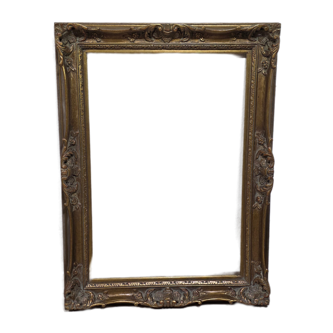 Large decorative gilded wooden frame featuring rich carved floral ornamentation.