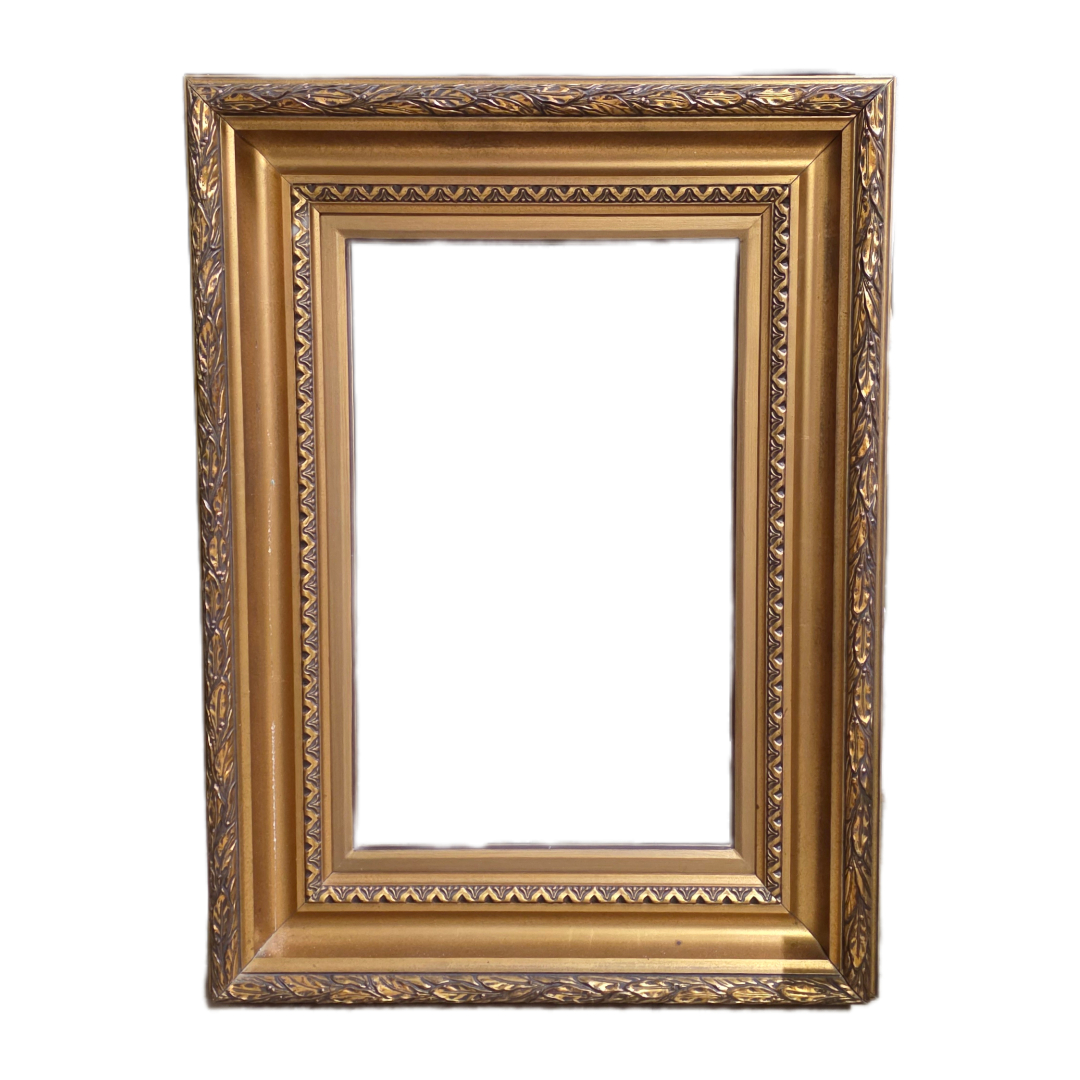 Elegant wooden frame with a rich gilded finish and finely carved decoration on both the outer and inner borders.