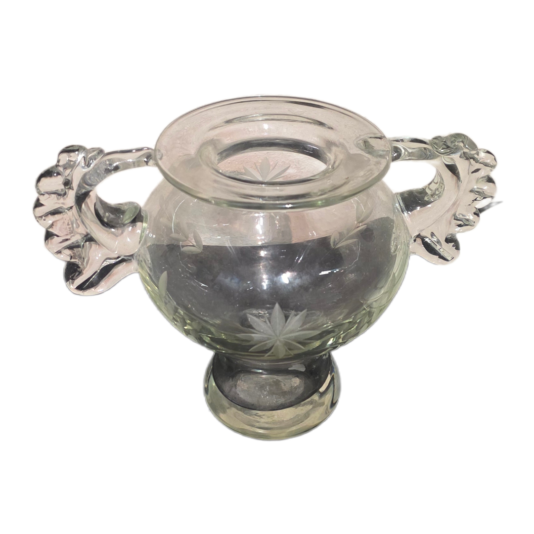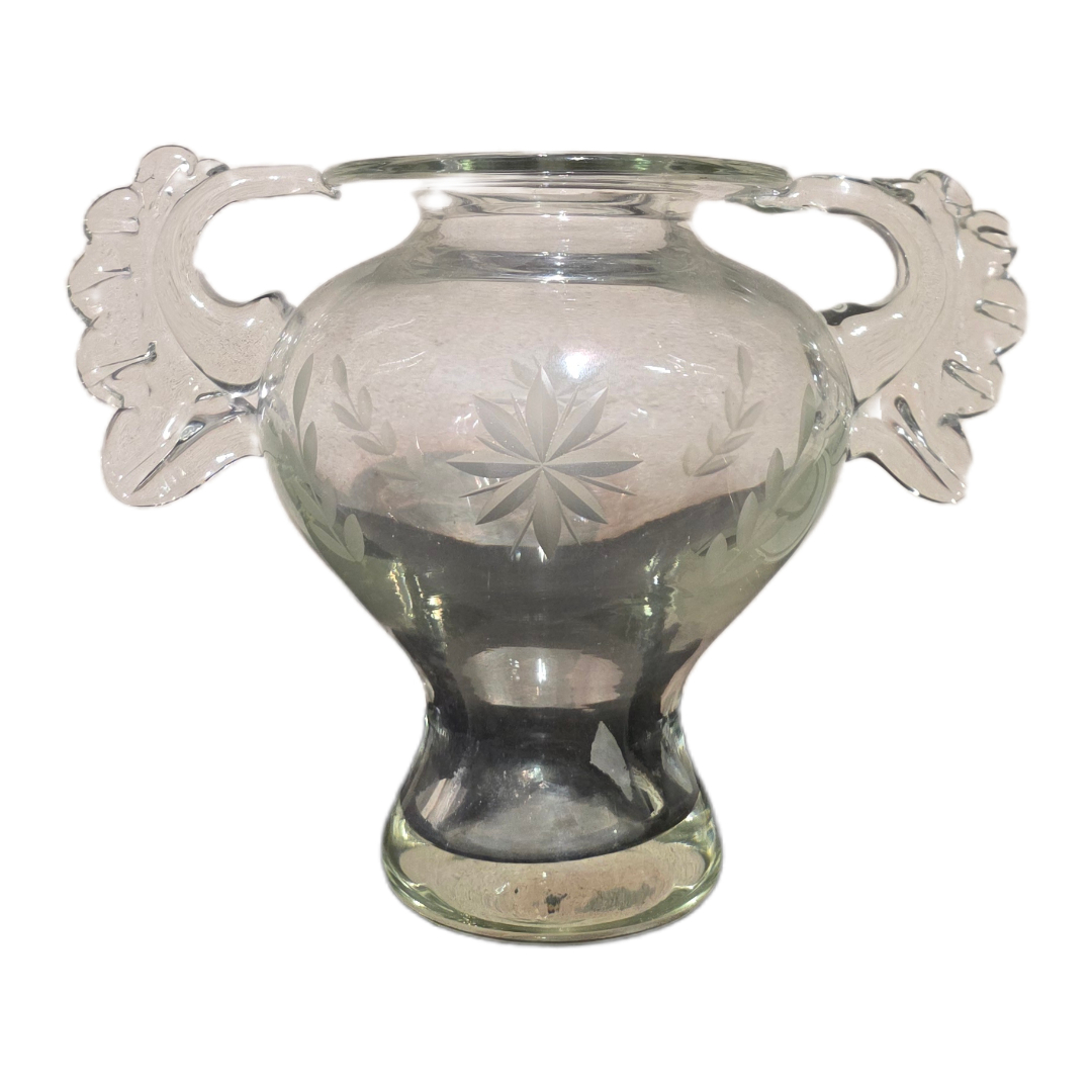 Το βάζο (ύψος 16 εκ.) διαθέτει χειροποίητη κοπή με φυτικά μοτίβα και κομψές λαβές, αποπνέοντας διαχρονική αισθητική.