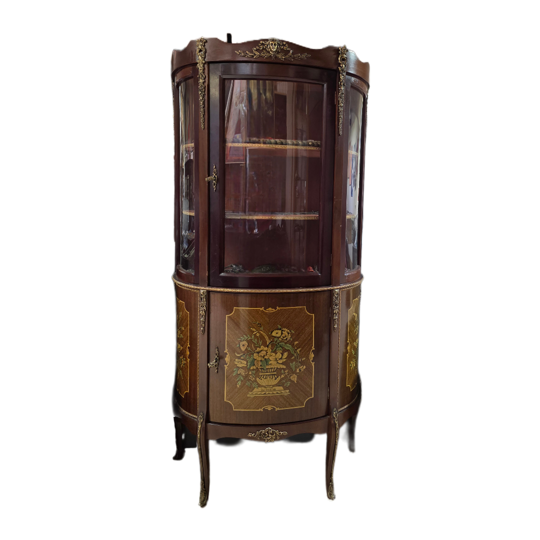 Display cabinet with bronze elements.