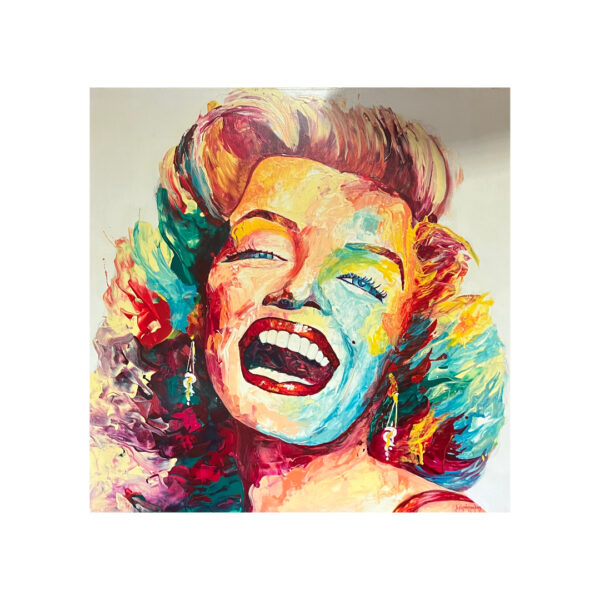 In this bold reinterpretation of an iconic figure, Christos Spyropoulos pays tribute to Marilyn Monroe through a pop-infused, expressionist lens. Executed on a large-scale canvas, the work pulsates with chromatic energy and gestural dynamism, capturing both the myth and fragility of the Hollywood star. Spyropoulos transcends the confines of portraiture, reimagining Monroe not merely as a symbol of glamour but as a timeless vessel of cultural resonance. The piece radiates a raw yet charismatic presence, emblematic of the artist’s distinct visual idiom.