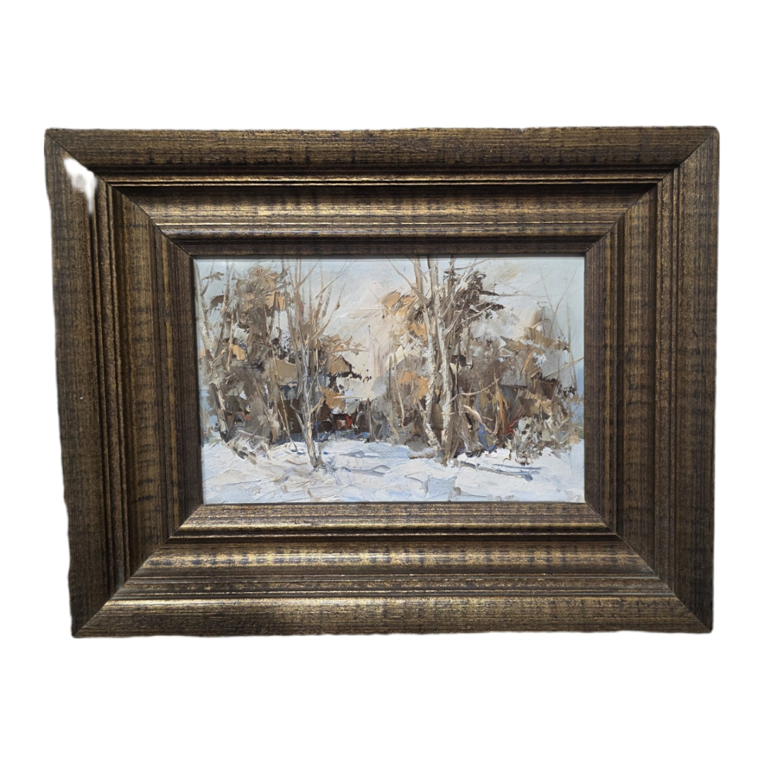 Winter Landscape. Palette Knife Oil Painting. Europe, 20th c.