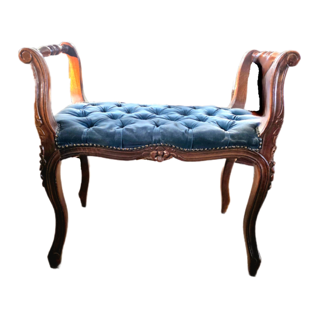 Elegant Louis XV–style bedroom bench with a finely carved wooden frame and gracefully curved legs.
