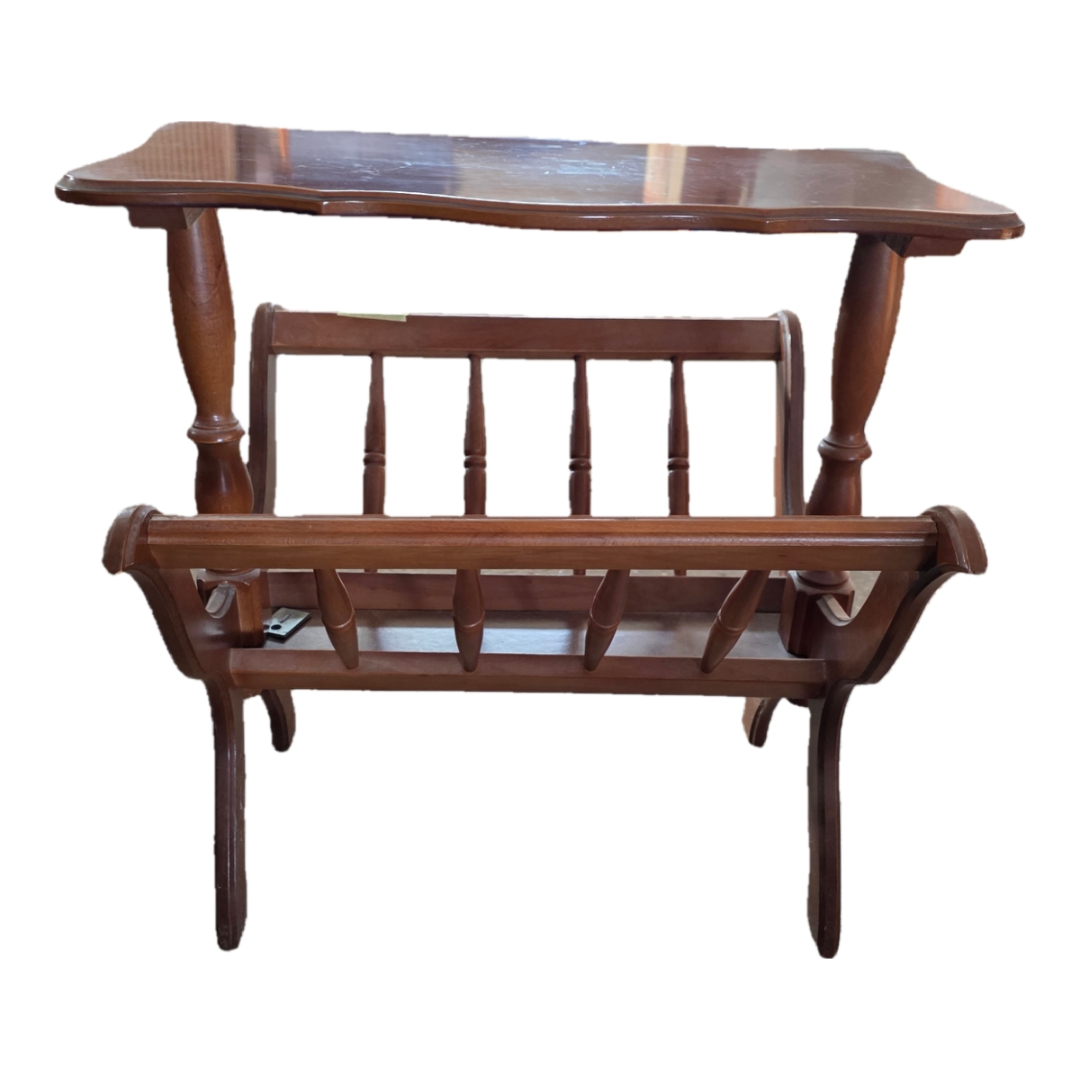 Ξύλινο βοηθητικό τραπεζάκι με ενσωματωμένη θήκη για περιοδικά. | Τιμή εκκίνησης: 20€