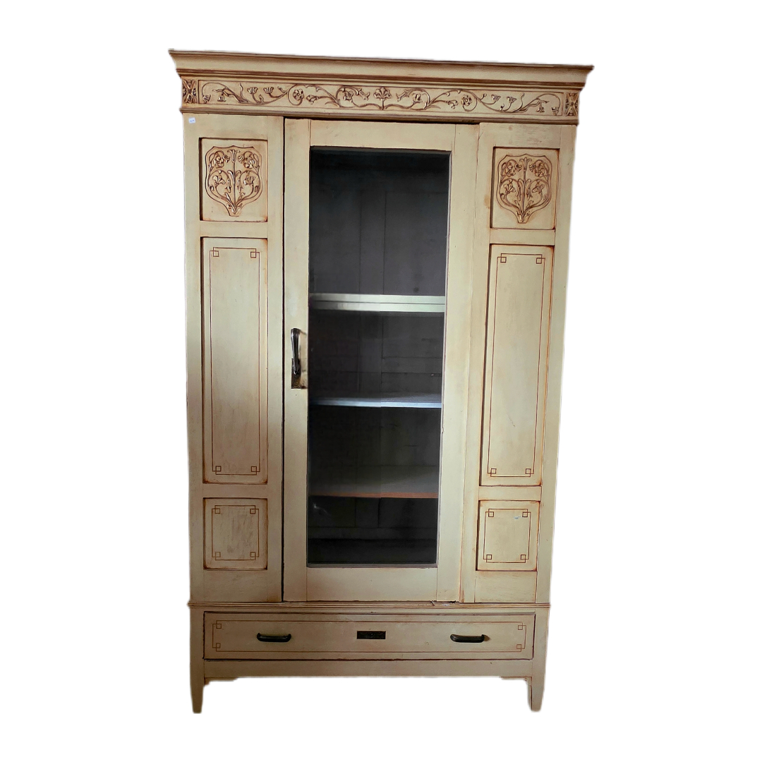 Ξύλινη βιτρίνα/ντουλάπα σε ανοιχτή κρεμ απόχρωση με ελαφρά πατίνα. | Τιμή εκκίνησης: 250€