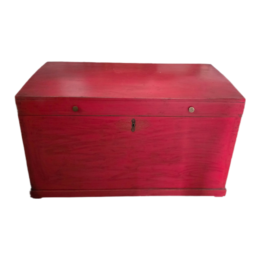 Ξύλινο μπαούλο σε έντονο κόκκινο χρώμα. | Τιμή εκκίνησης: 50€