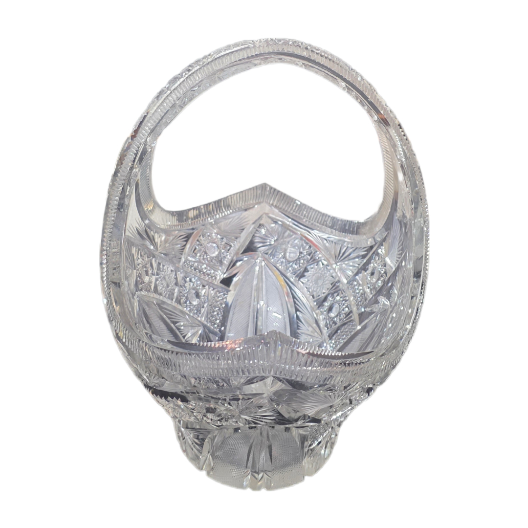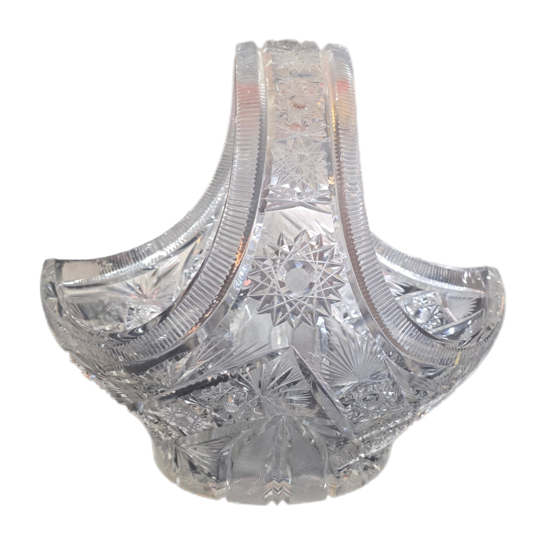 Distinctive cut crystal piece, Bohemia style, shaped as a decorative basket with rich hand-cut geometric patterns.