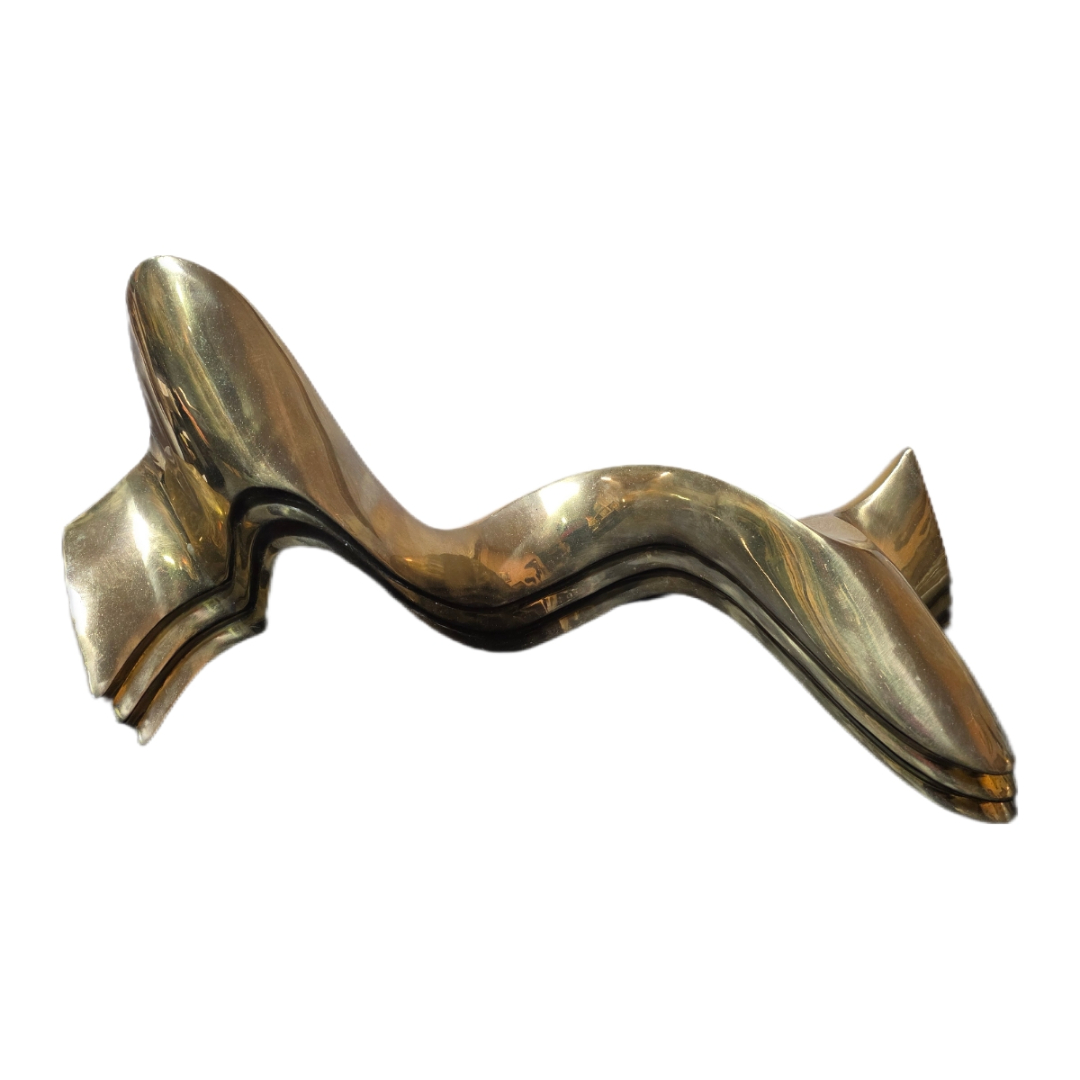 A polished brass sculpture with fluid, wave-like contours and strong organic movement, emblematic of Skalkotos’ expressive sculptural language.
