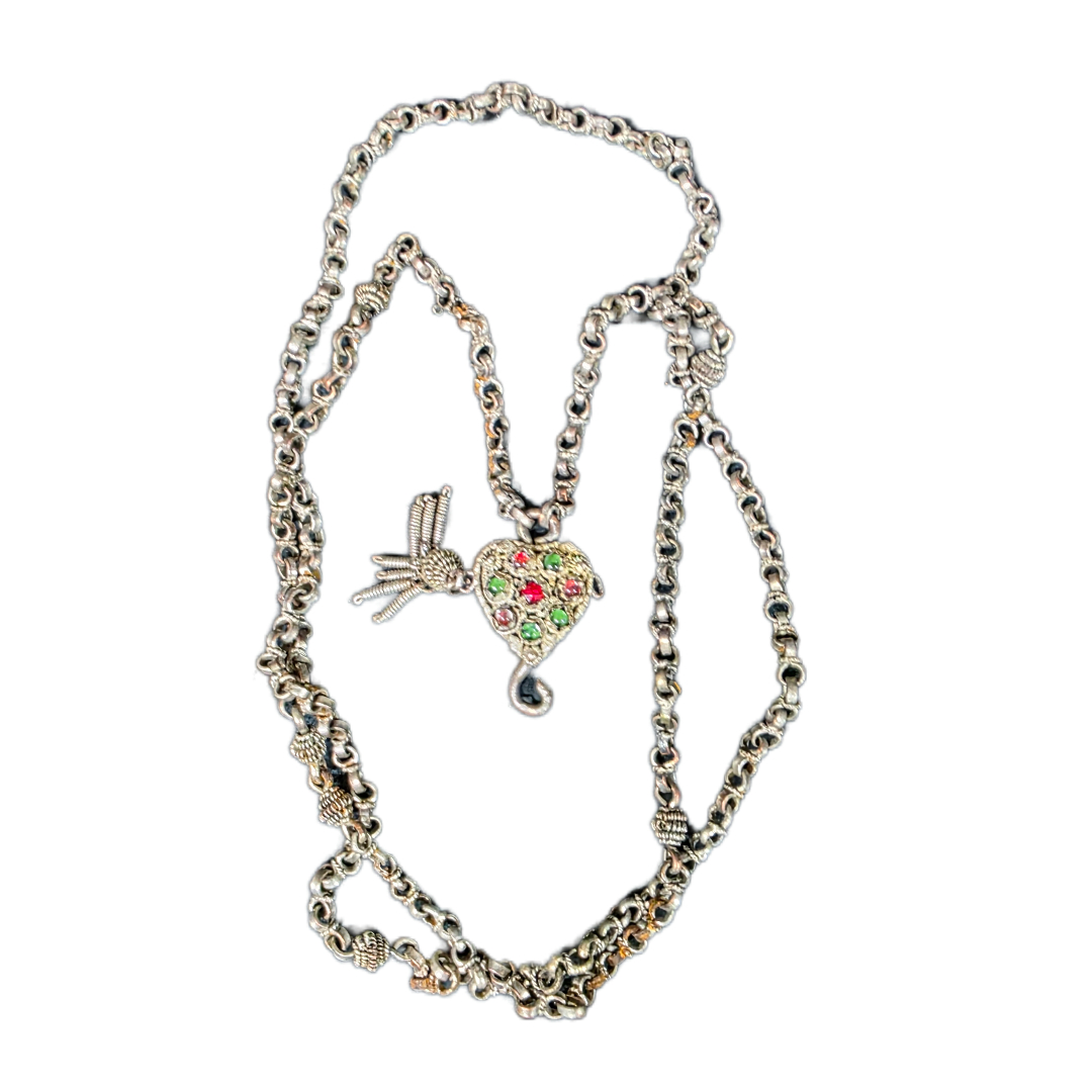 Silver eight-link chain for a belt ornament with stones.