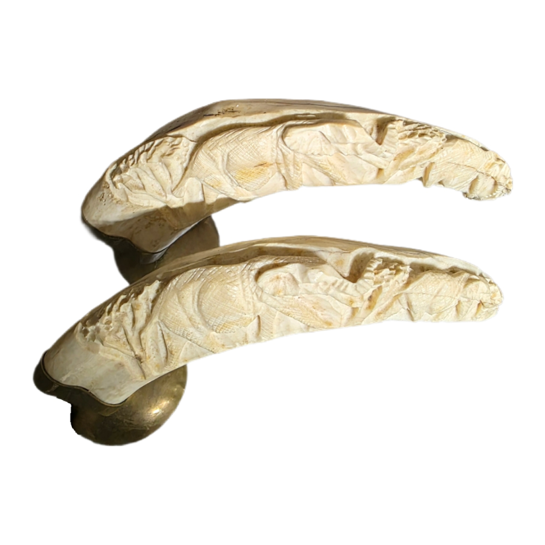Ζεύγος χαυλιόδοντες από αγριόχοιρο/ χειρολαβές πόρτας, πιθανότατα αφρικανικής προέλευσης, με εξαιρετικό σκάλισμα.