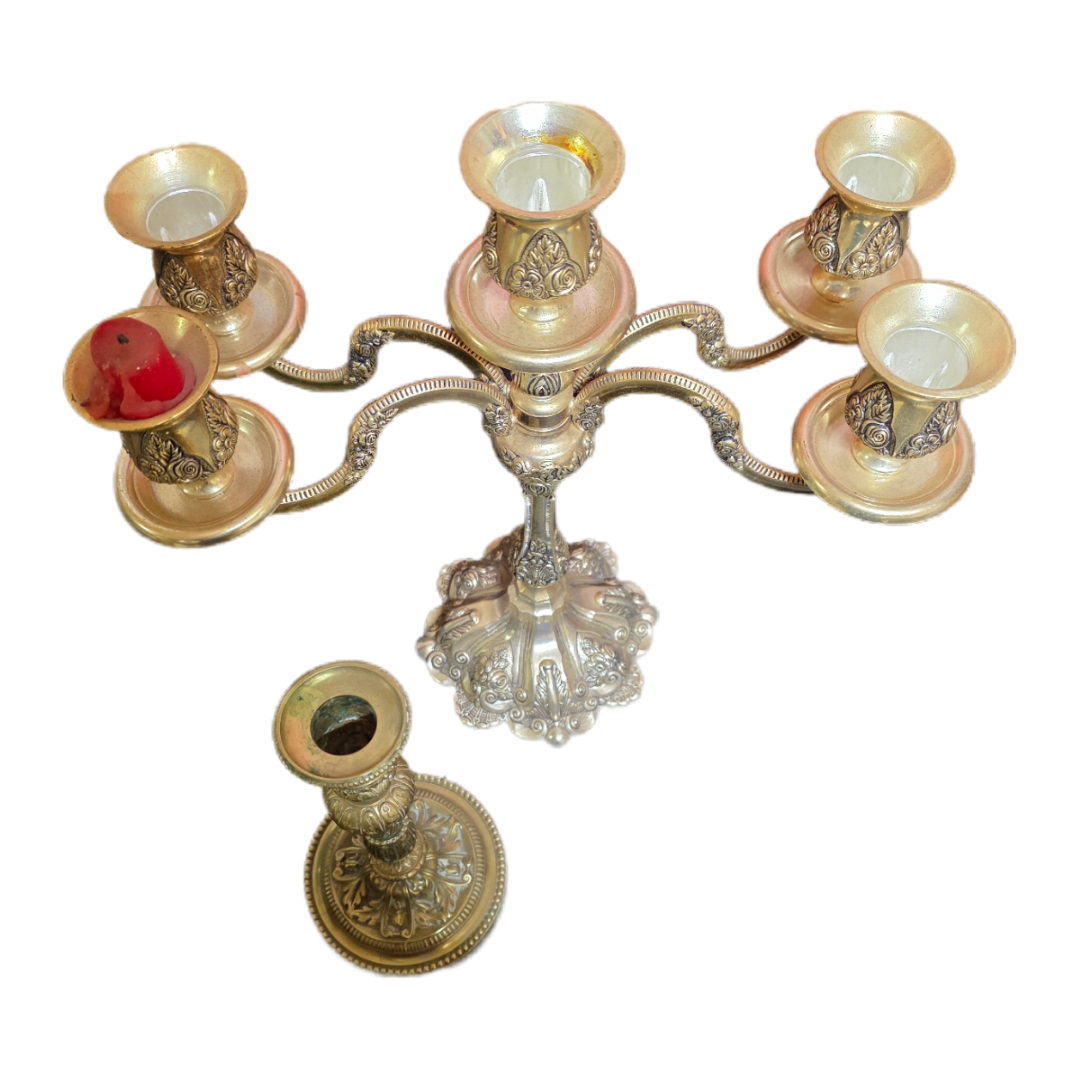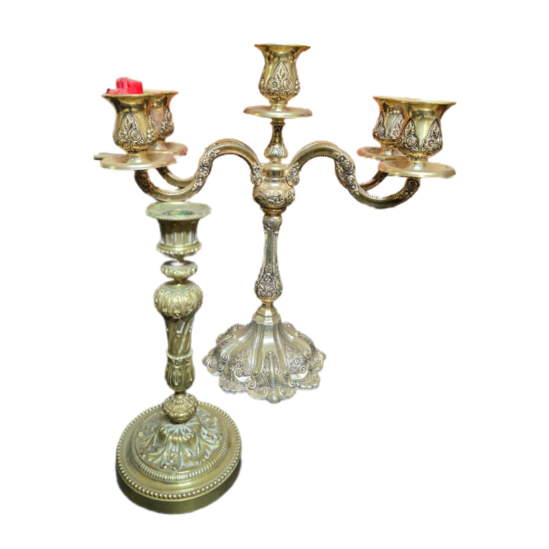 Elegant brass candelabrums, likely late 19th – early 20th century.