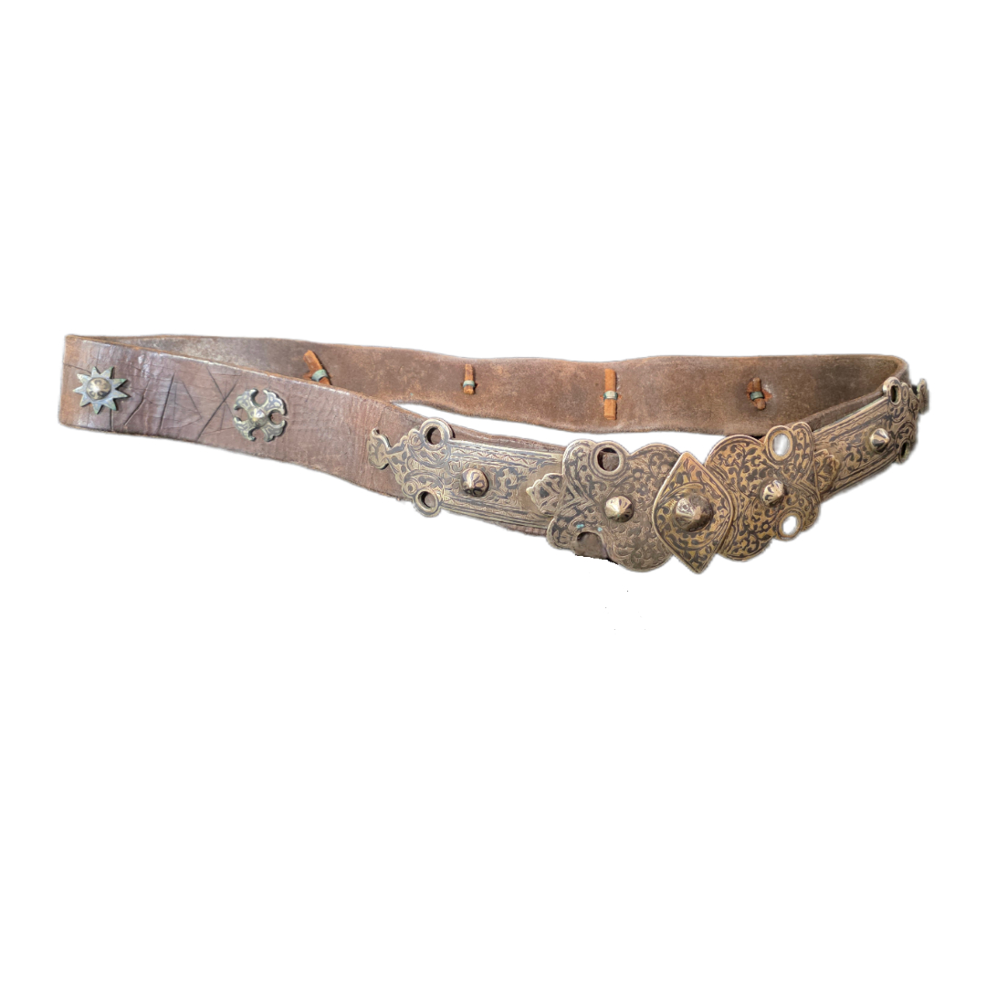 Ασημένια ζώνη με σαβάτ σε δέρμα. | Τιμή εκκίνησης: