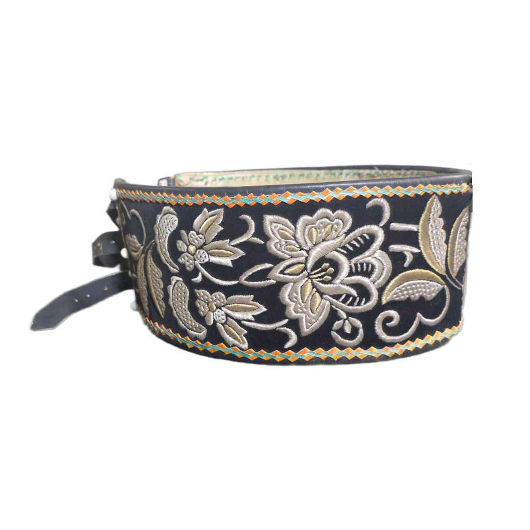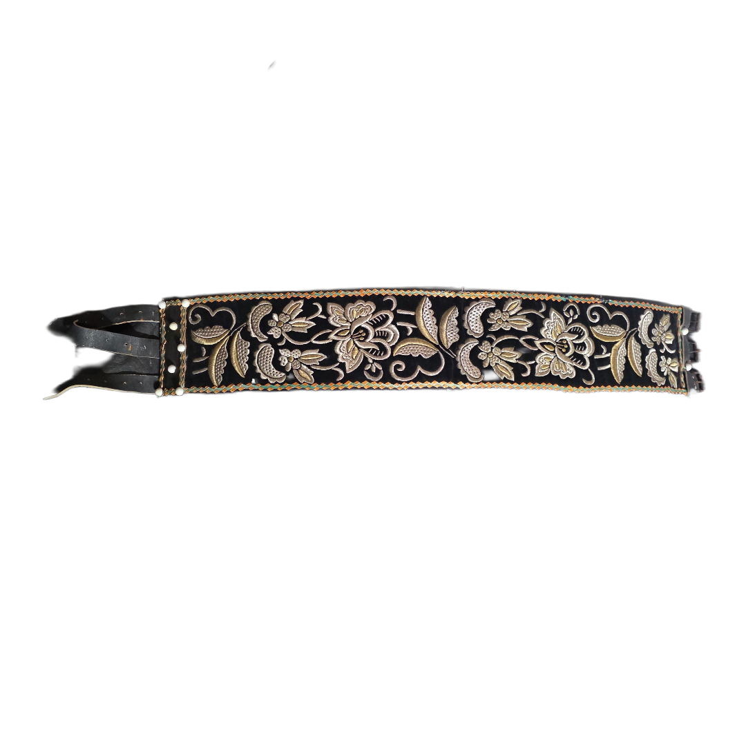 Embroidered leather belt.