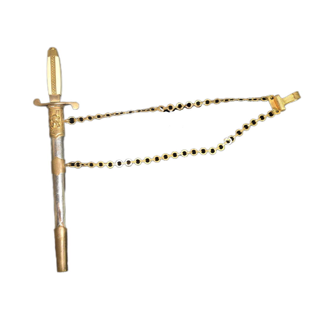 Διακοσμητικό σπαθάκι με μεταλλική θήκη και συνοδευτική αλυσίδα ανάρτησης.