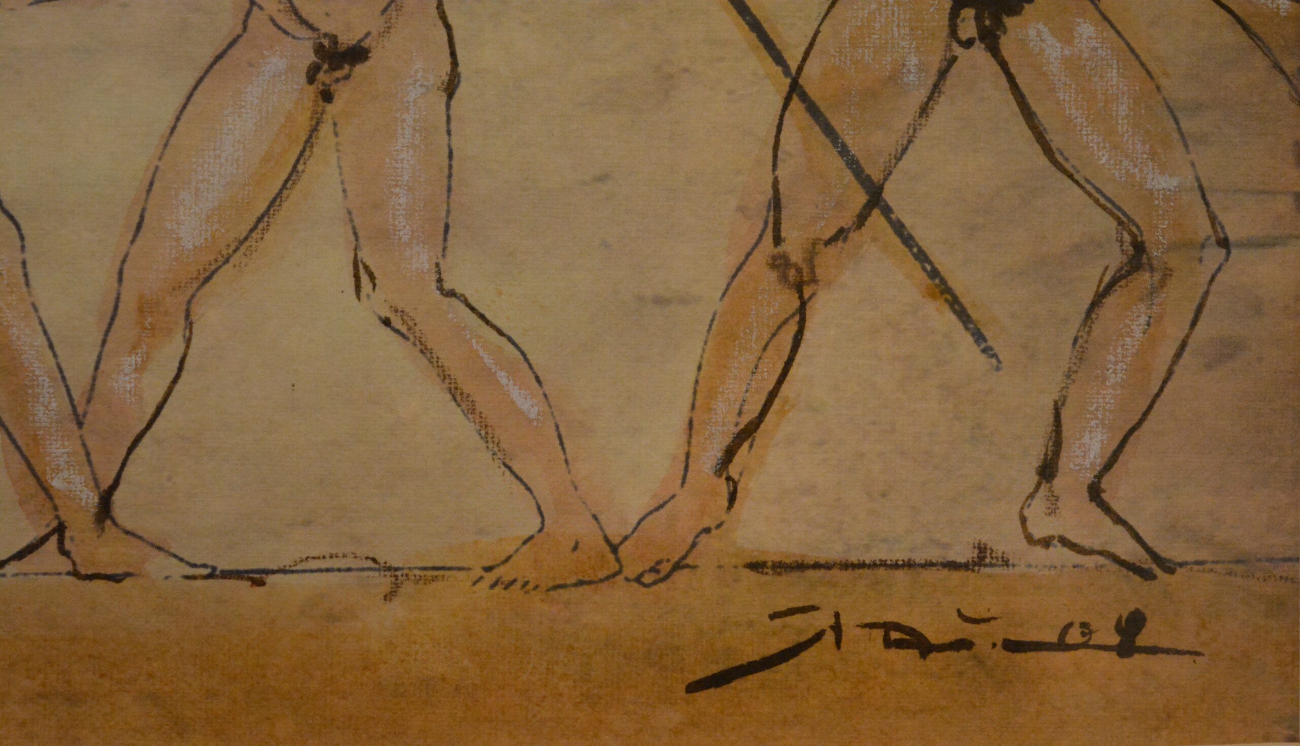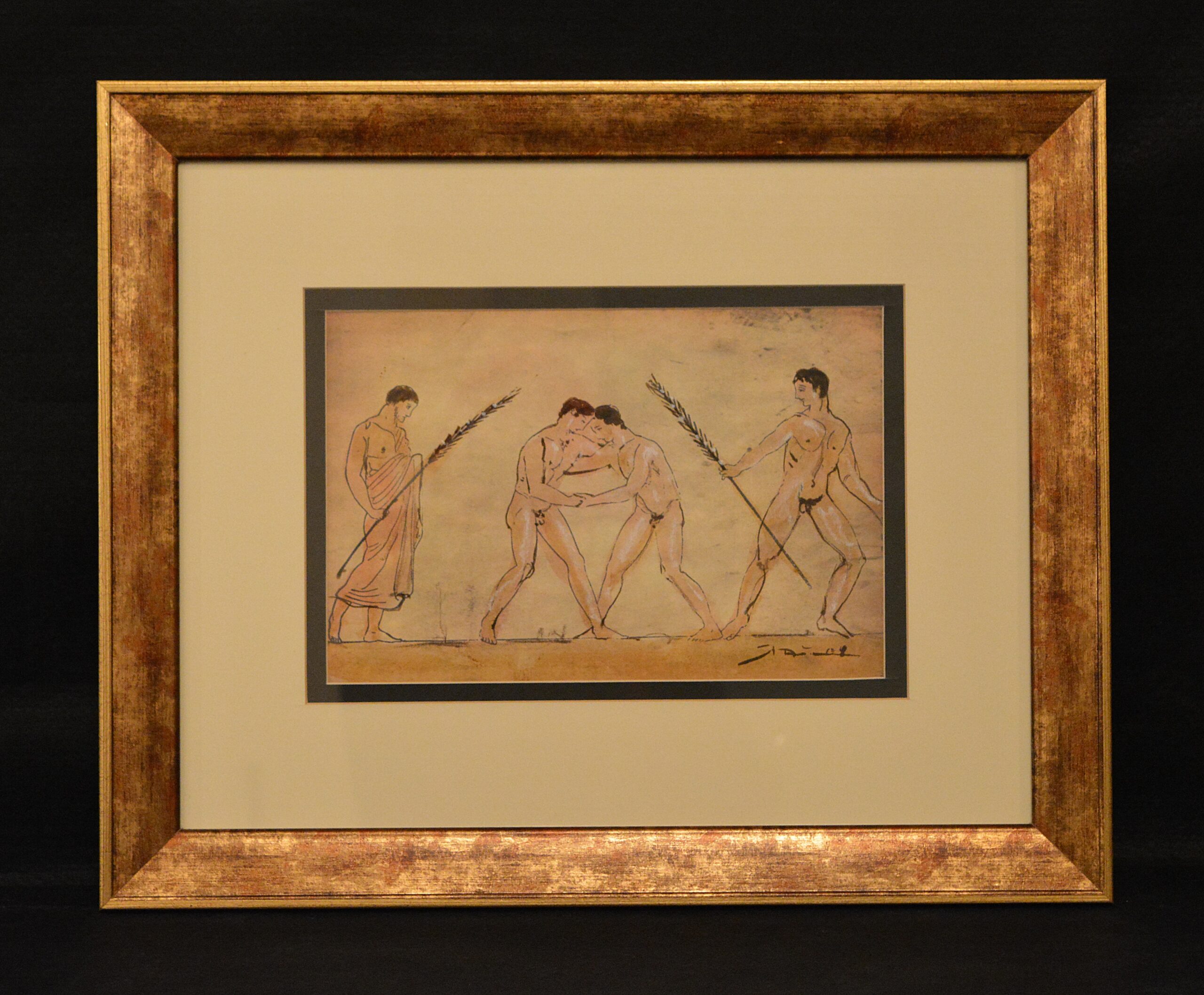 Painting of Lazaros Pantos, “Black-figure” series (in reference to reference to the famous ancient pottery painting technique), mixed media on paper. The series is included in a special edition for this lost art, and the potential buyer will also be provided with a catalogue signed by the artist. Dimensions of frame: 50cm (width) x 41cm (height). Dimensions of artwork: 27cm x 20cm.