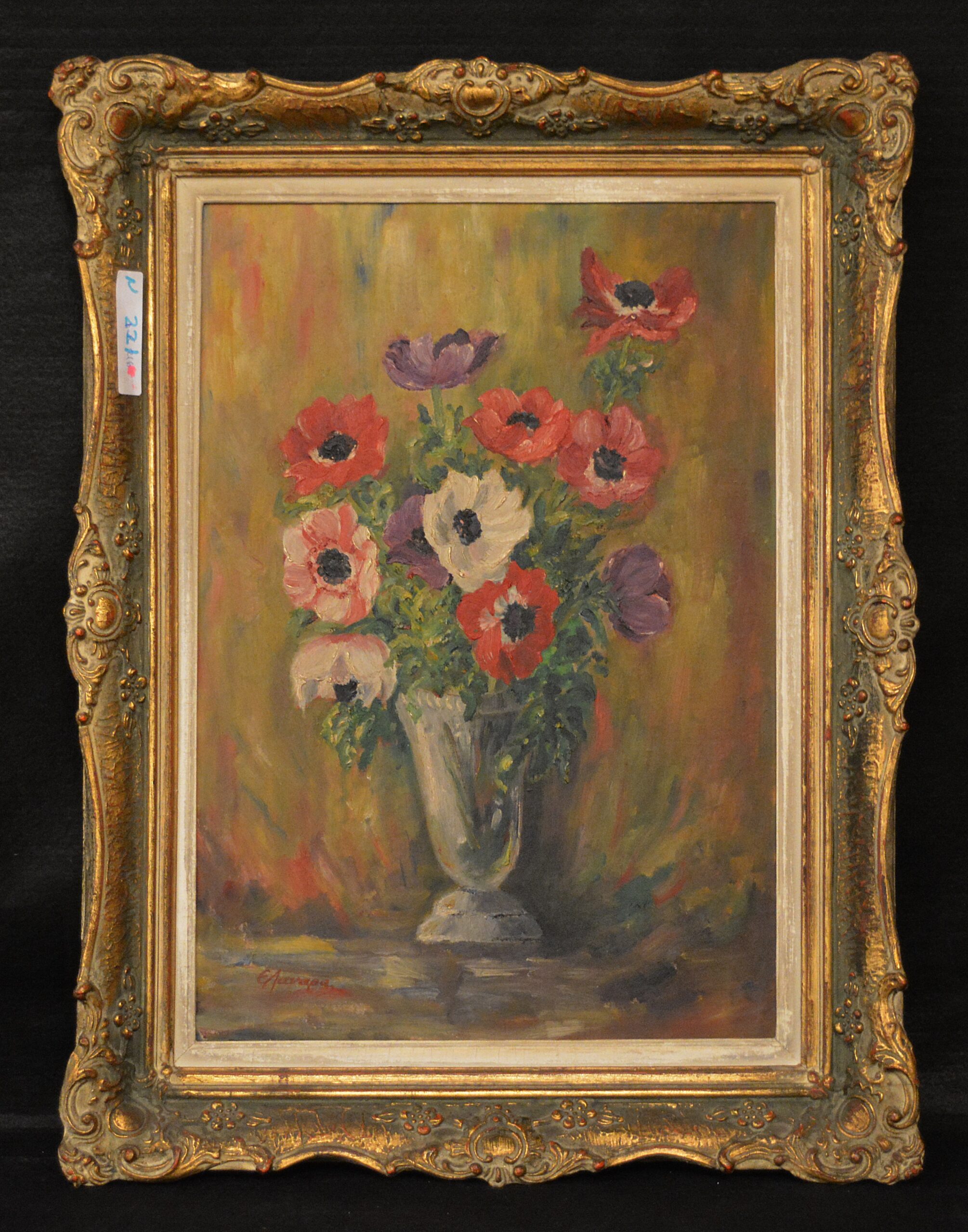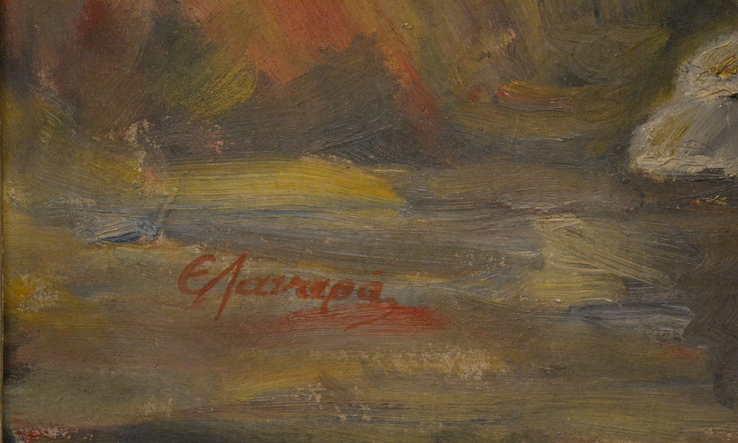 Painting, oil on wood, signature E. Lanara. Dimensions of frame: 50cm (width) x 65cm (height). Dimensions of artwork: 34cm x 50cm.