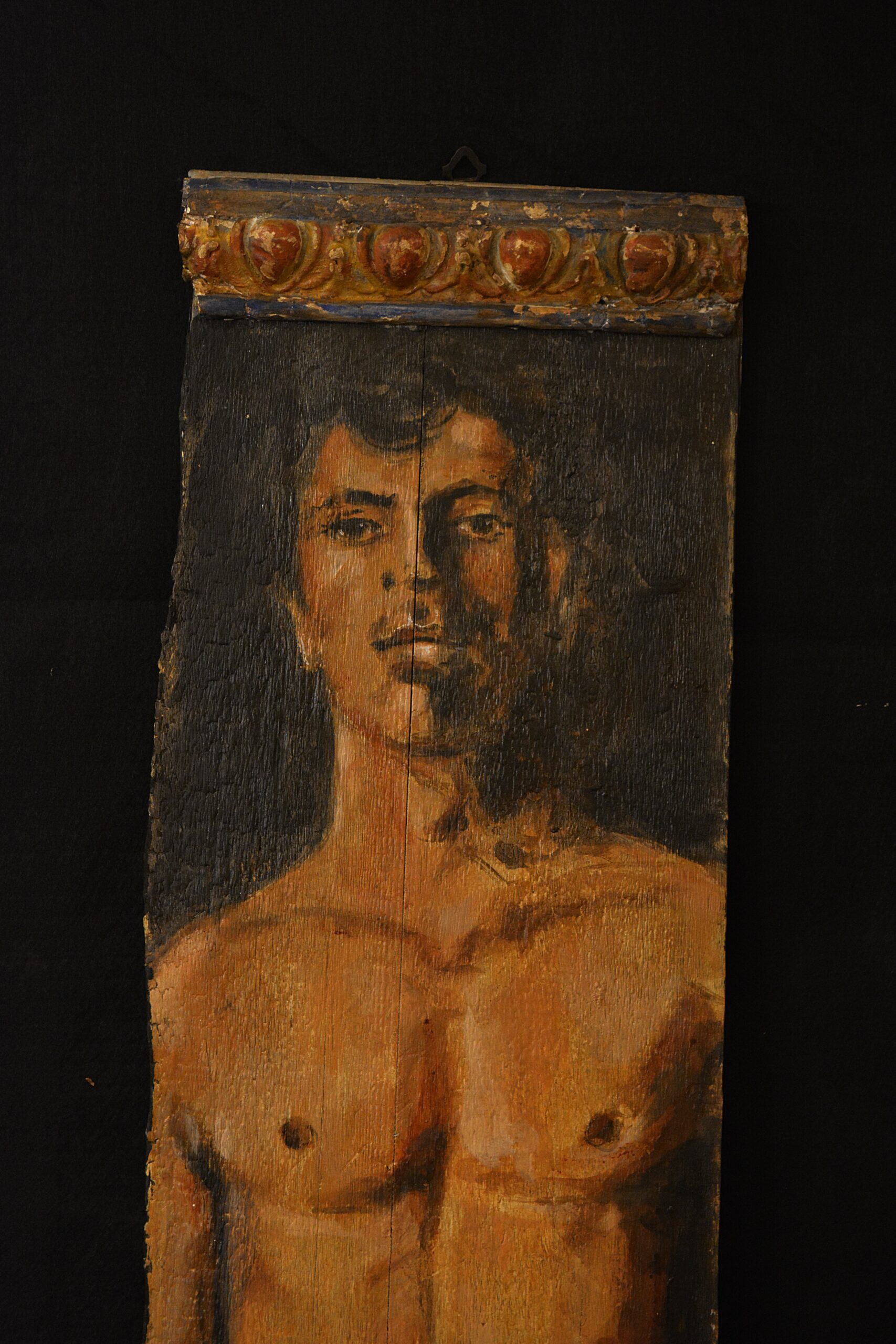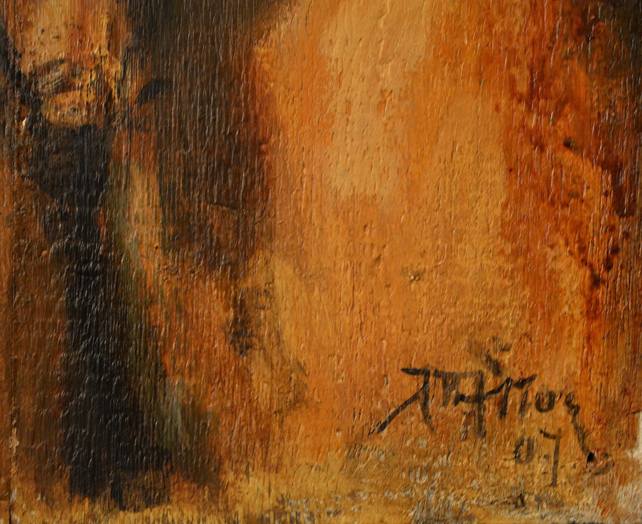 Untitled painting of Lazaros Pantos, oil on wood. Estimated gallery price over 1500 euros. Dimensions: 32cm (width) x 105cm (height).